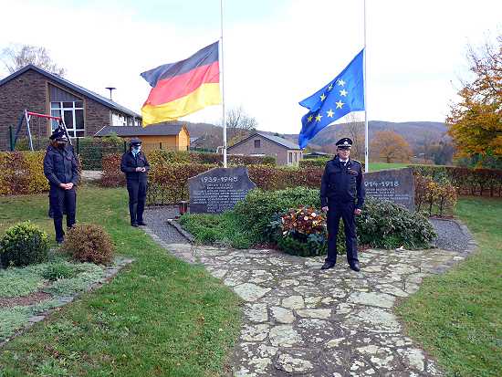 Kranzniederlegung am "Kirmessonntag"Obwohl in diesem Jahr wegen der Coronapandemie die Kirmes wie auch andere größere Veranstaltungen ausfallen musste, ließ es sich die Feuerwehr Hohn nicht nehmen, am "Kirmessonntag" am Kriegerehrenmal einen Kranz zu Ehren der Gefallenen und Vermissten der beiden Weltkriege niederzulegen. Mit musikalischer Begleitung durch den Musikverein Nöthen und mit Bürgermeisterin Sabine Preiser-Marian zogen die Feuerwehrleute sowie mehrere Bürgerinnen und Bürger aus Hohn und Kolvenbach von der Kapelle Kolvenbach zum Kriegerehrenmal, wo die Bürgermeisterin nach der Kranzniederlegung eine Ansprache hielt.